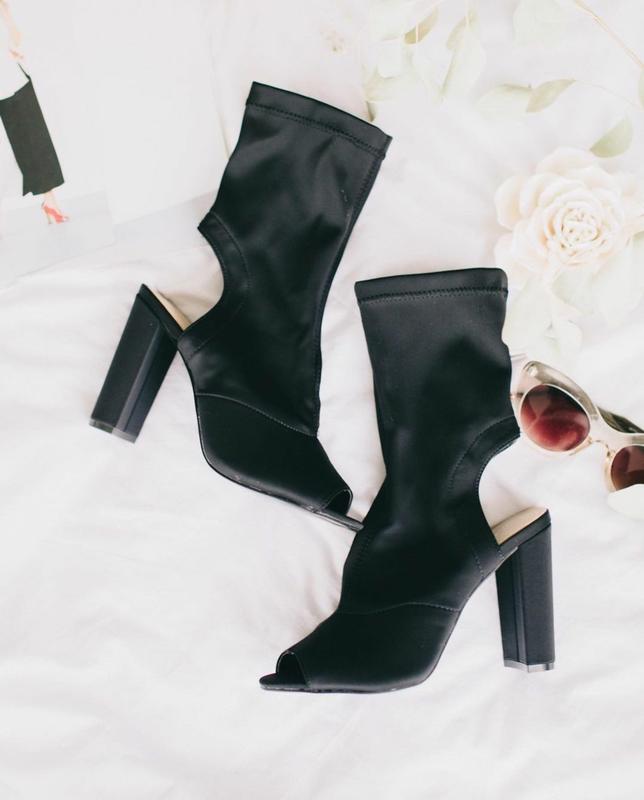 Трендові босоніжки-носки, на зручному широкому каблуку Розмір: 40 (25,5 см) Висота каблука: 10,5 см Тканина: Еластан