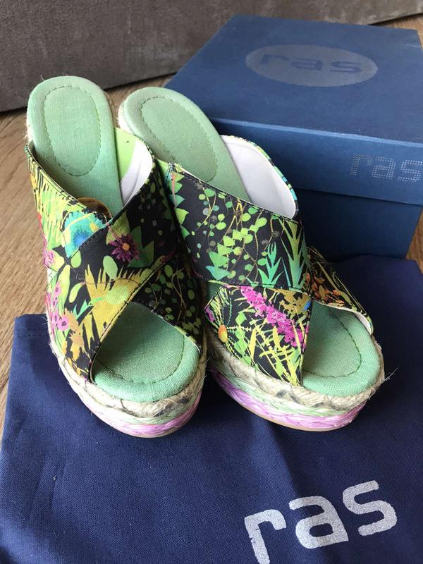 Босоніжки Матеріал: тектиль Колір різнокольорові Танкетка від 4,5 до 12 см. Розмір 36 (на 35) Взуті один раз