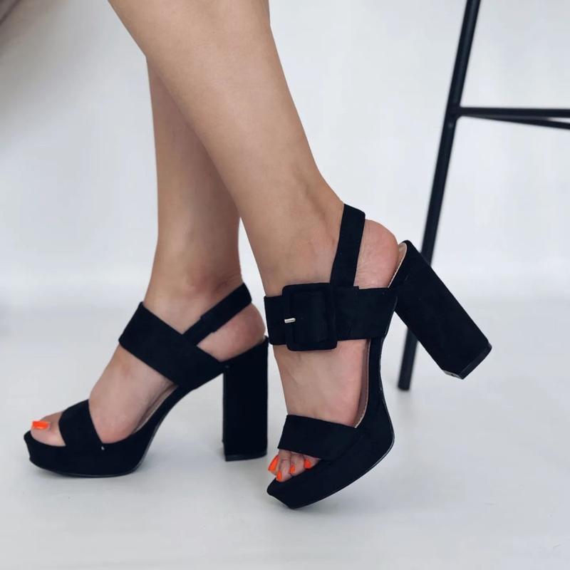 Жіночі чорні замшеві босоніжки на підборі на платформі