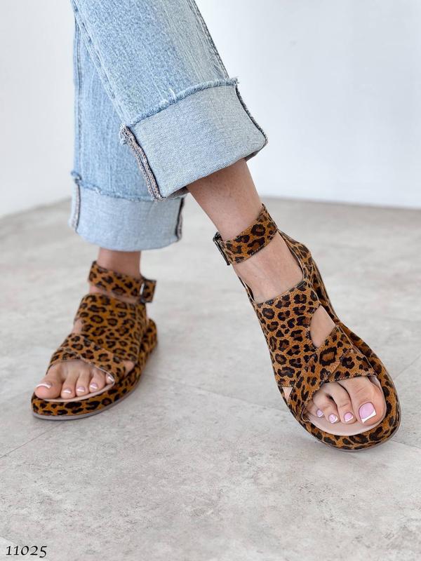 Є 35 розмір, босоніжки з натурального велюру з леопардовим принтом