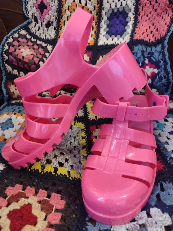 Желейні резові босоніжки неонового рожевого кольору. Розмір 40,висота каблука 6 см.Для створення образу справжньої Барбі)