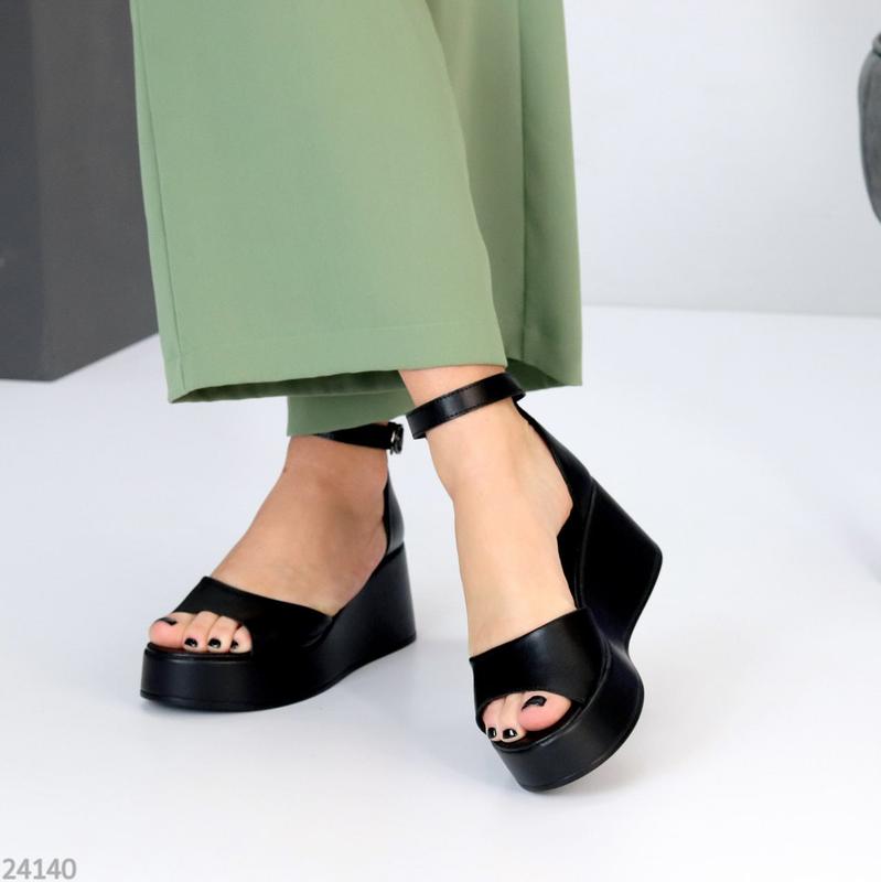 Босоніжки на танкетці арт 24140 Розміри 36-40 Матеріал - НАТУР. ШКІРА Устілка - Екошкіра Колір - Чорний Танкетка - 7 см/3,5 см На середню стопу Розмір у розмір 36-23,5 см 37-24 см 38-24,5 см 39-25 см 40-25,5 см Ціна 1830 грн
