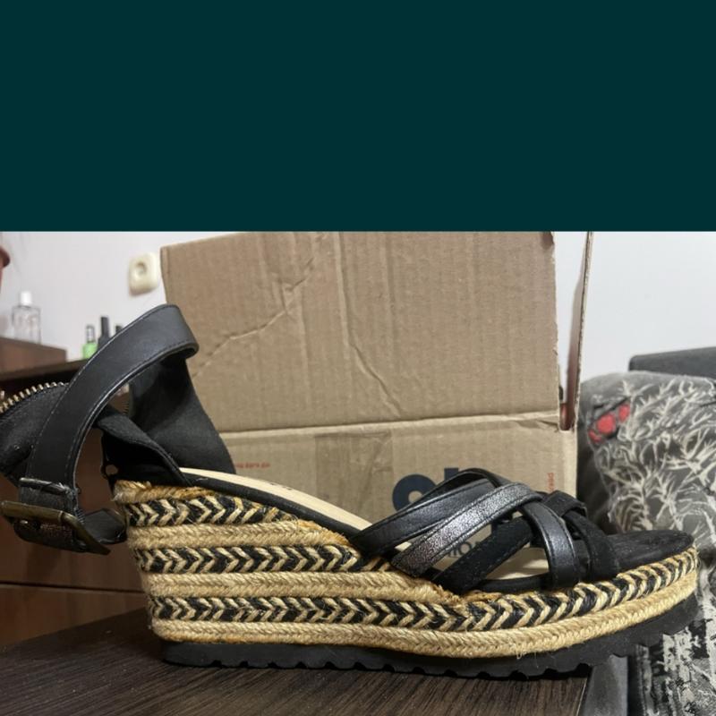 Босоніжки eksept на високій платформі з джутовим декором. Абсолютно нові, жодного разу не одягались. Зручні,гарно тримають ногу. Стильний чорний колір пасуватимуть під все! Застібка блискавка ззаду Розмір 37