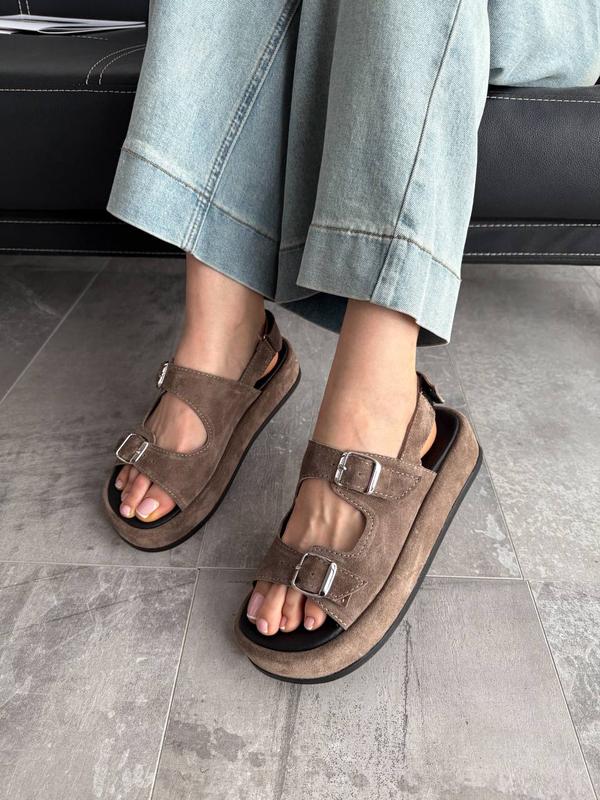 Трендові босоніжки на високій платформі 😍 Арт. 5615 чорний Арт. 5616 горіх Арт. 5617 пісок Натуральний замш Виробник Україна Висота платформи по пʼятці 4 см, попереду 3 см Розмірна сітка: 36-23.5 37-24 38-24.5 39-25.5 40-26