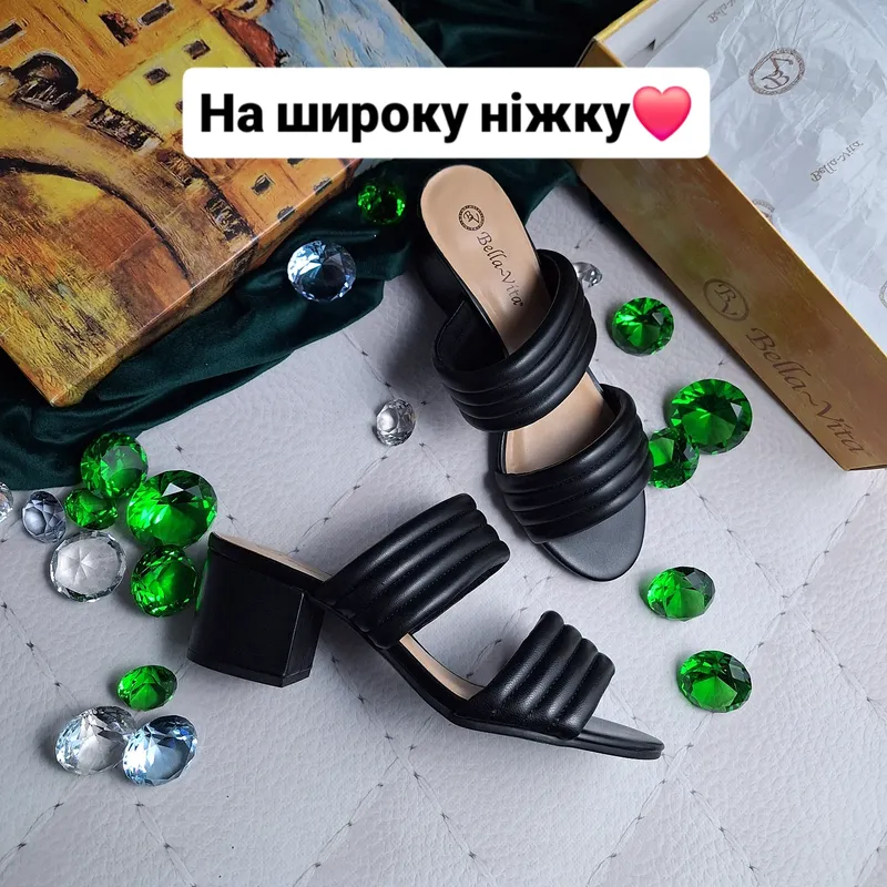 Bella vita оригінал чорні шкіряні босоніжки сабо на широку ніжку на невисоких підборах
