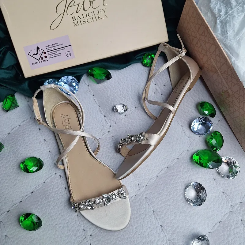 Badgley mischka оригінал сатинові босоніжки сандалії прикрашені камінням