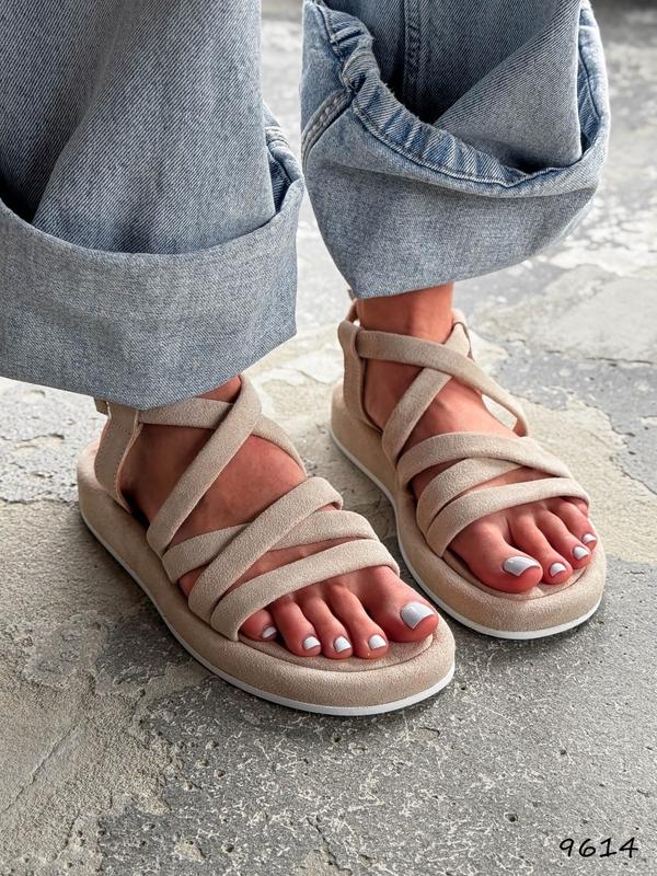 Жіночі босоніжки ремінці переплети замша нюд 🧹🥰