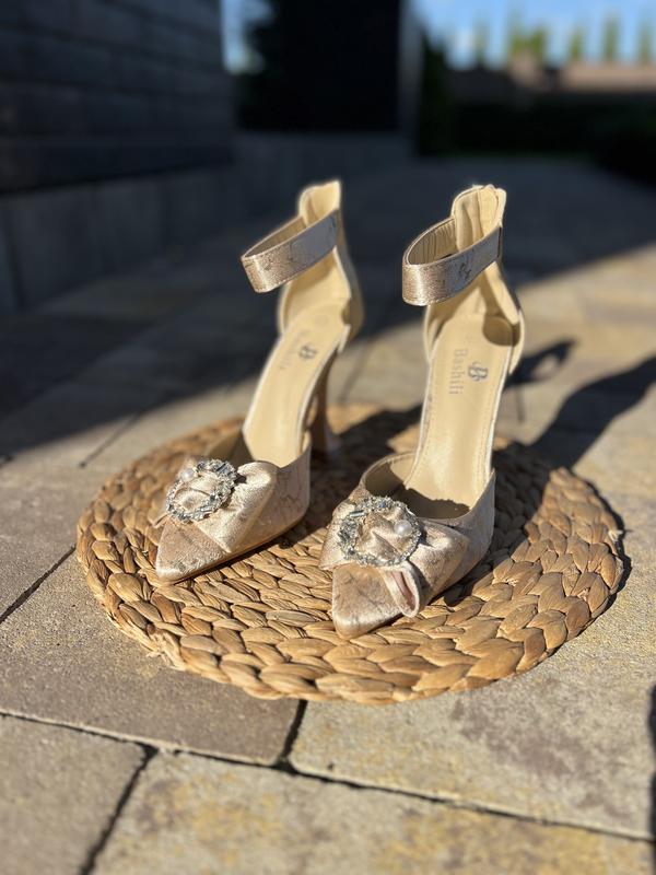 Елегантні вечірні босоніжки в стилі Манола Бланіка, виконані з шампанського/золотистого текстурованого текстилю. Мають гострий носок, прикрашений розкішною кристальною брошкою з перлиною в центрі. Босоніжки ідеально підійдуть для особливих подій, весіль та урочистих прийомів. Ідуть розмір в розмір: 36 🌞 продано 37 🌞 продано 38 розмір - 24,5 см 39 🌞 продано 40 розмір - 26 см