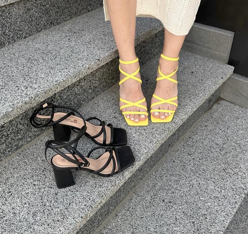 Босоніжки на каблуках чорні жовті жіночі