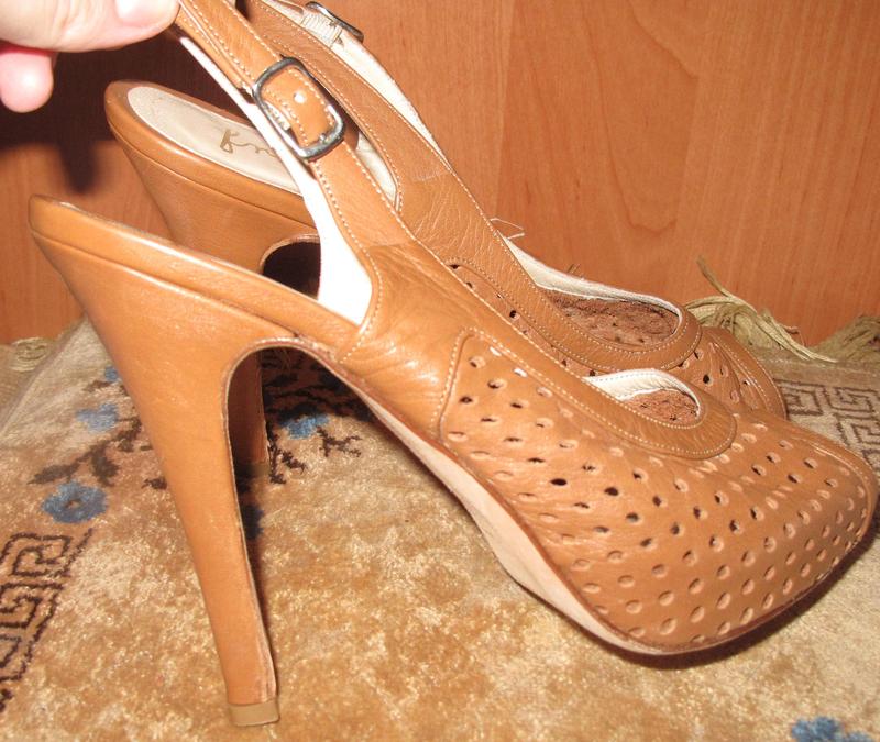 коричневі босоніжки шкіра Frenesia р37 Італія дуже мякі та зручні устілка 24см ширина 8см каблук 12см спереду 2см