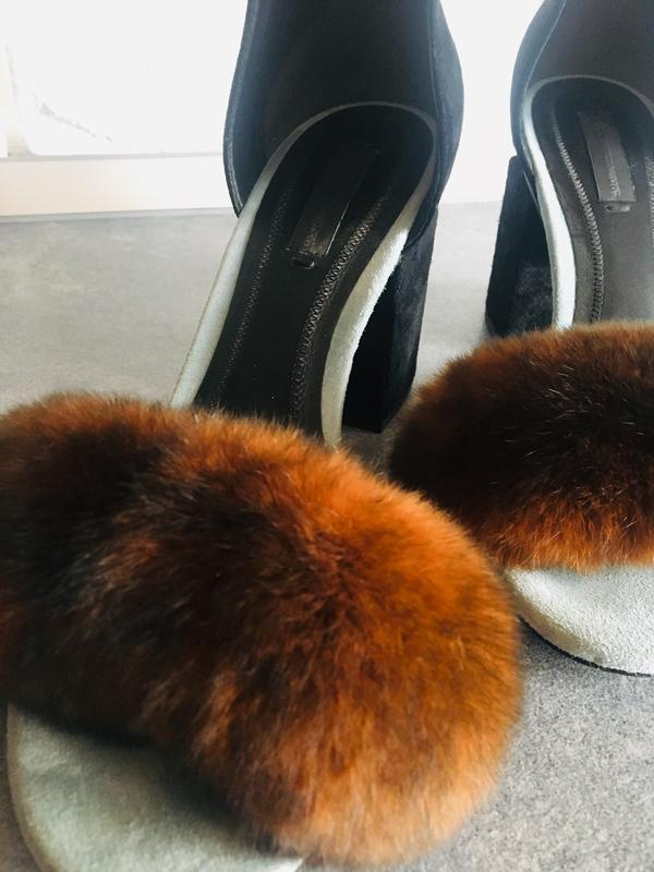 Жіночі босоніжки з натуральної замші і хутра, м'які пушинки, дуже стильно виглядають на ніжці за рахунок підборів, і жіночні і кокетливі за рахунок приємного хутра, зручна колодка. Були выгуляны пару раз.