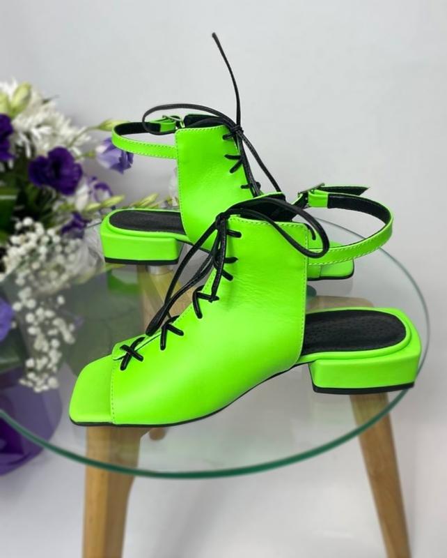 Шикарні неон салатовий босоніжки bondi на шнурочках натуральна шкіра 🔰 босоніжки bond сал...