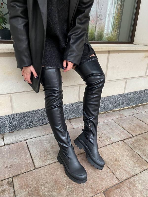 Круті преміальні високі Ботфорти 🧡 ЗИМА & ОСІНЬ Колір: чорний Розміри: 36(23.5см) 37(24см) 38(24.5см) 39(25см) 40(26см) Матеріал: натуральна шкіра до кісточки,верх преміальний стрейч Всередині: натуральне хутро до кісточки,до верху легкий фліс Підошва: Резиновмістна Виробник: Украіна 🇺🇦 🌱підошва: 4,5см 🕊повна висота виробу: 65см 🔹об’єм верху: 45см Ціна: 2600 грн