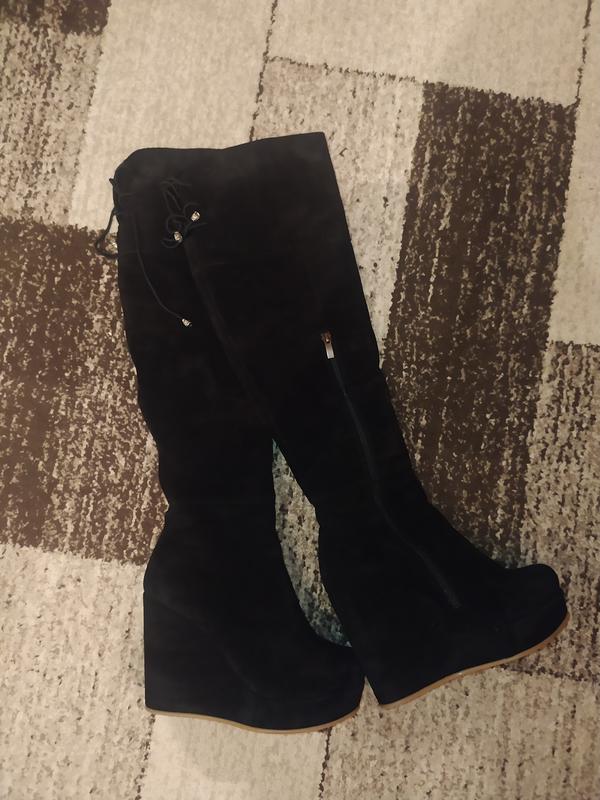 Шикарні чоботи ботфорти нат. замша + утеплювач вовна, розмір —38, Заміри за запитом.