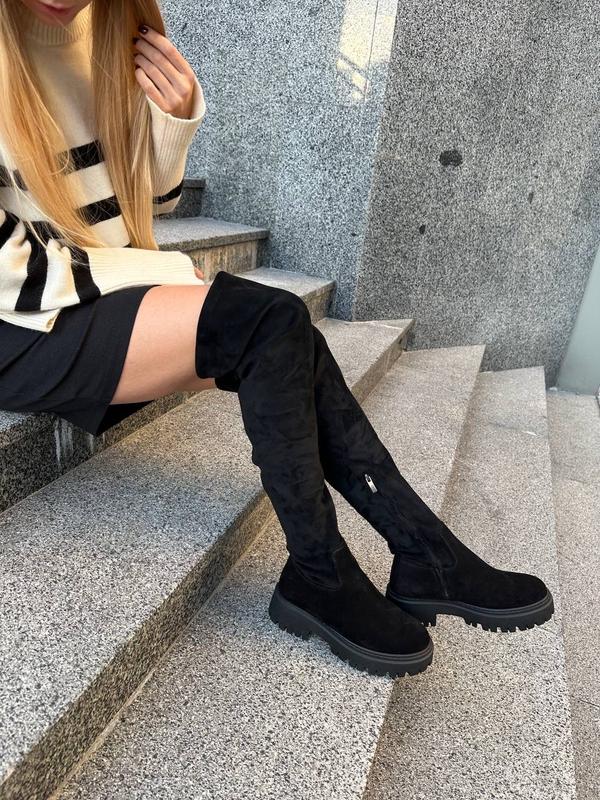 Женские высокие (длинные) сапоги (ботфорты) натуральная замша ботинки