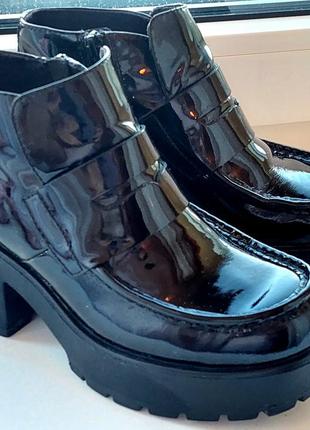 Чорні лаковані ботінки.37 розмір.Ідеальний стан.Шкіра+лак.