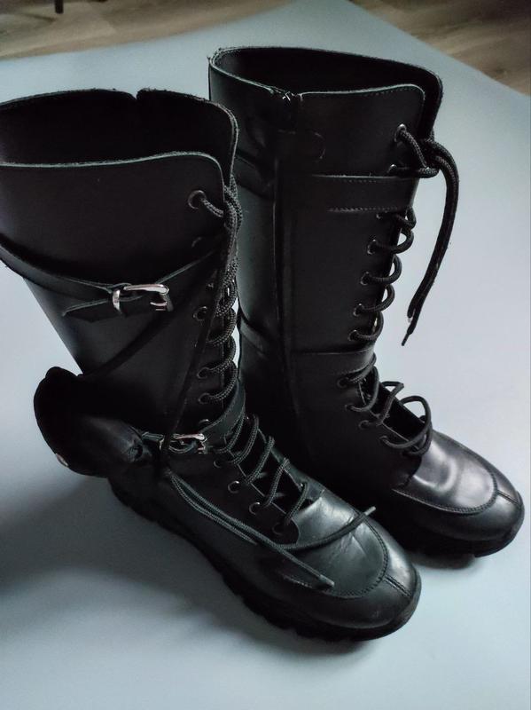 Шкіряні чоботи з блискавкою та шнуровкою. Довжина устілки 23