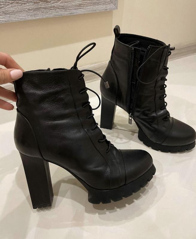 Шкіряні ботинки на підборах. Збоку замочок. Розмір 38(24,5см)