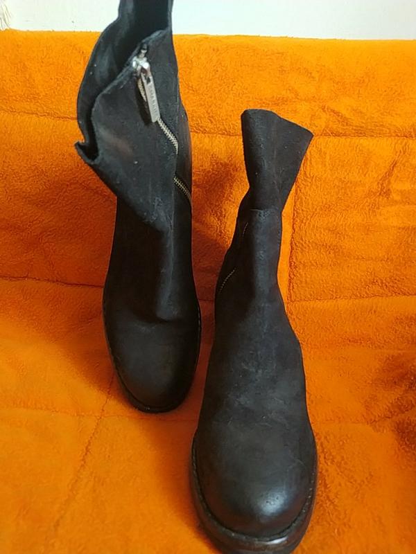 Ботильйони з натуральної замші всередині підкладка зі шкіри висота каблука 8 см, устілки відсутні, довжина зсередини 27,5 см,