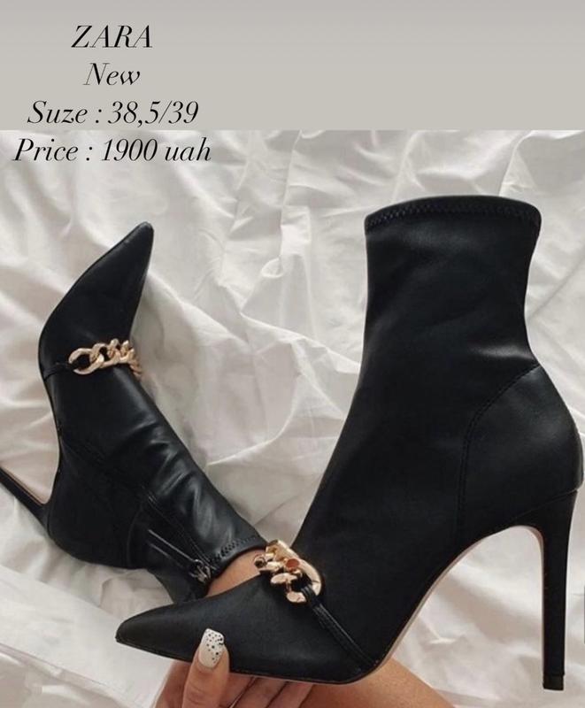 Zara 🖤 Черные ботильоны на шпильке. Массивная цепь на подъеме. Острый носок и обшитые каблуки. Застегиваются на молнию с внутренней стороны. AIRFIT®. Стелька из гибкой технической латексной пены для обеспечения большего комфорта. Высота каблука 9,5 см. Размер:38