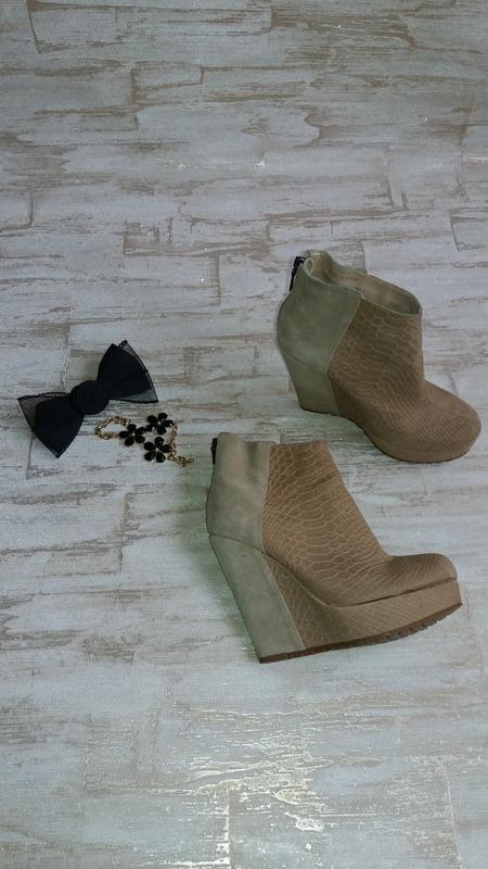 Натуральний нубук і замша.Застібаються ззаду на замок.На підошві фабрична профілактика з матеріалу, що не стирається.Всередині текстиль. На стопу 25,5 см, вказаний р.39.