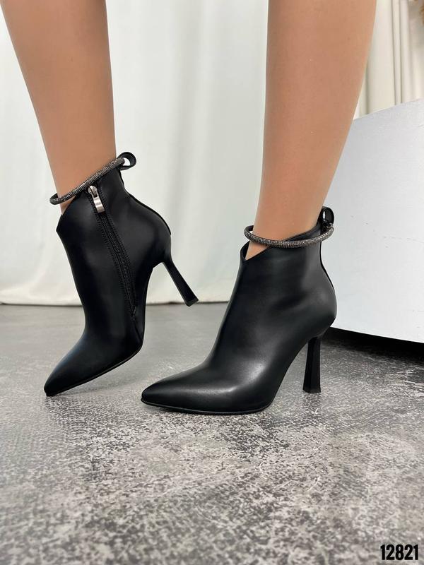 Код 12821 Ботильйони Еко-шкіра Колір Чорний Висота від підбору 12см Підбор 10см Всередині фліс Розмір у розмір На ніжку не з високим підйомом 36-23,5см 37-24см 38-24,5см 39-25см 40-25,5см
