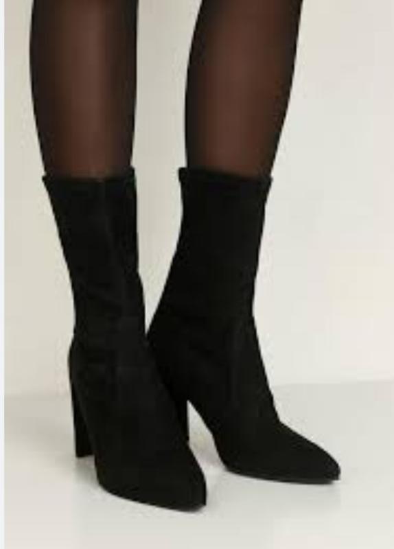 Чёрные бархатные ботильоны в очень хорошем состоянии. Есть микро нюанс! На последнем фото, не критично! Стелька 26см. Каблук 10 см.