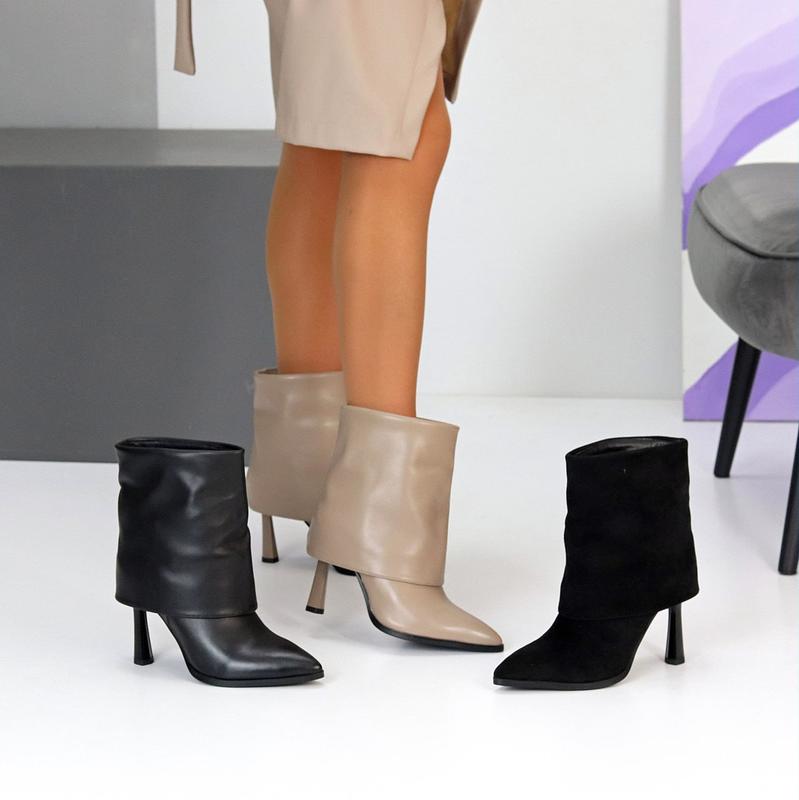 🟣 Нова Колекція 🟣 Код 25072 Розміри 36-40 Ботильйони "Elli" Матеріал - Екозамша Всередині - Фліс Сезон - Демі Колір - в асортименті Висота від п'ятки - 14 см Каблук - 9,5 см На середню стопу Розмір у розмір 36-23,5 37-24 38-24,5 39-25,5 40-26