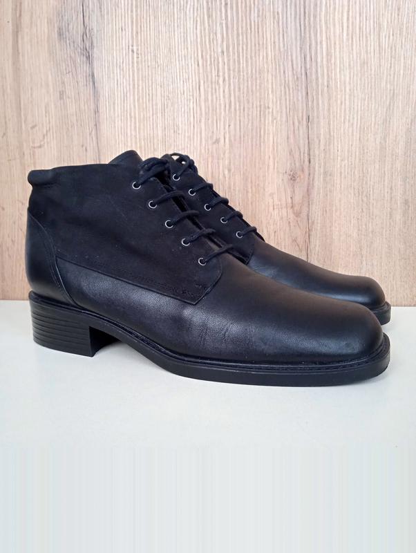 Особливості моделі: європейський виробник, повністю натуральна шкіра і нубук, легкі по вазі, м'які і теплі всередині, мають суцільнолиту прошиту підошву з широкими стійкими підборами і універсальний базовий дизайн. Матеріал: зовні натуральна шкіра і натуральний нубук, всередині м'який щільний шерстяний фліс. Устілки теж шерстяні, м'які і теплі. Колір: чорний, все як на фото. Розмір: 40, ідуть на 40-40.5. Довжина устілки від краю до краю: 26.5 см. Ширина підошви: 9.1 см. Повнота: середня. Загальна висота по заднику: 13.1 см. Висота підборів по заднику: 3.5 см. Висота підошви у передній частині: 1 см. Застібки: шнуровка спереду. Сезон: демісезон і єврозима. Стан: хороший, рівень зносу невеликий. Функціональні пошкодження чи дефекти відсутні. Стан на фото. Відправлення Укрпоштою, Новою поштою чи Meest. Я на зв´язку практично завжди і з радістю дам відповіді на всі уточнювальні питання, пишіть.