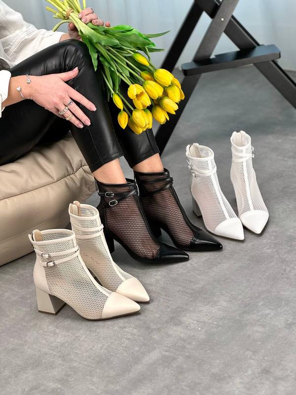 🟣 Нова Колекція 🟣 Код 26795 - Беж Код 26796 - Білий Код 26797 - Чорний Розміри 36-40 Ботильйони "Revita" Матеріал - Екошкіра / Текстильна сітка Устілка - Екошкіра Висота від п’ятки - 13 см Каблук - 7 см Заміри прописані за результатами примірки на стопу На середню стопу Розмір у розмір 36-23,5 37-24 38-24,5 39-25 40-25,5