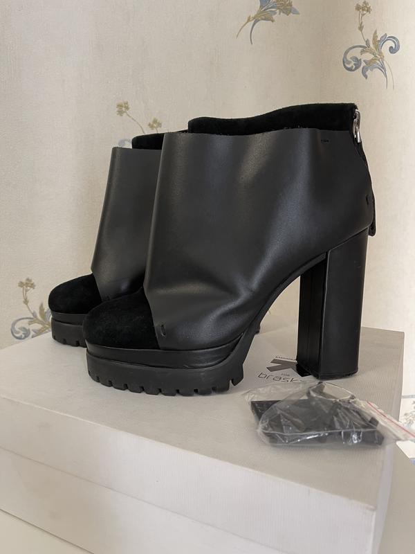 Круті ботильйони kamenska kononova for braska ,розмір 39, не такі як у всіх! з коробкою і дод. набійками. У відмінному стані! шкіра всередині,зовні. каблук 12см., платформа 4см., стійкі і зручні!Купувалися дорого!трохи маломерял, добре будуть на ніжку 24,5 див., але на 25см так само будуть, головне ніжка повинна бути вузенькою!