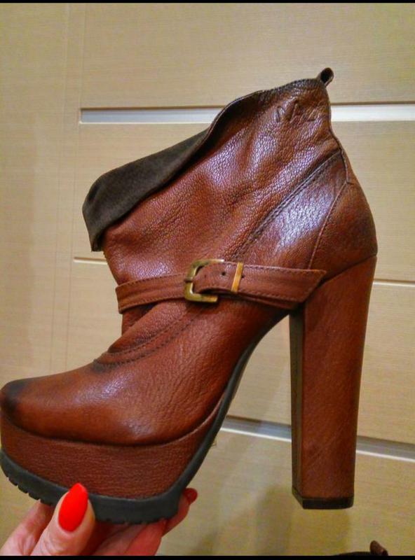 Шкіряні ботильйони з широчезною халявою,розмір 37,Іспанія,одягнуто 1 раз для зйомки,з коробкою