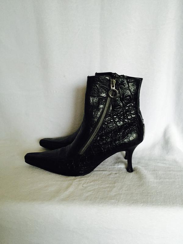 ціна ДНЯ! Дизайнерські Черевики ботильйони зі шкіри крокодила фірми-Donald j Pliner. Стан ідеальний! Взувалися один раз. На розмір-38/25 см по устілці, на вузьку ніжку. Висота каблука-7см Склад: 100% шкіра крокодила