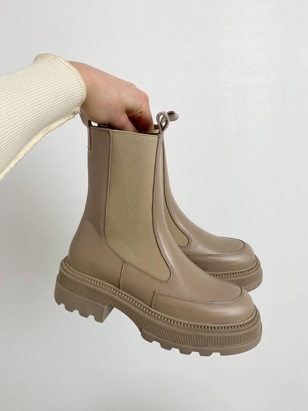 Стильні жіночі шкіряні черевики челсі бежеві на байку (осінні,весняні),на хутрі (зимові)