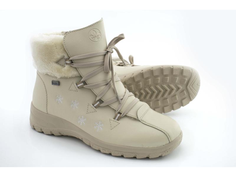 Оригинальные немецкие женские зимние ботинки из натуральной гладкой кожи в бежевом цвете. Обувь утеплена овчиной, со вставками из меха. Скидка действует до конца сентября.