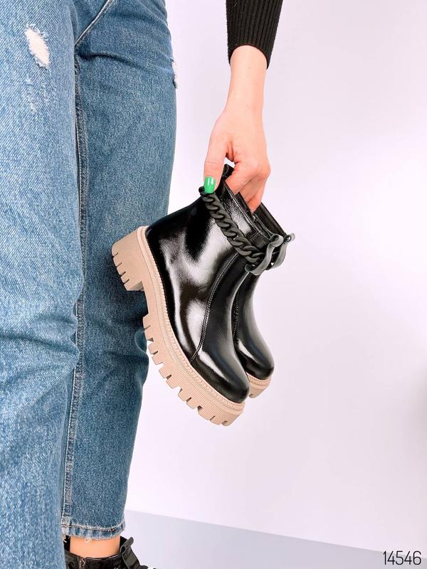 Код 14546 Черевики ДЕМІ Натуральний лак Колір Black+Beige Висота від підошви 11см Підошва 5см-3см Всередині байка Розмір у розмір Виробник Україна 36-23,5см 37-24см 38-24,5см 39-25,5см 40-26см