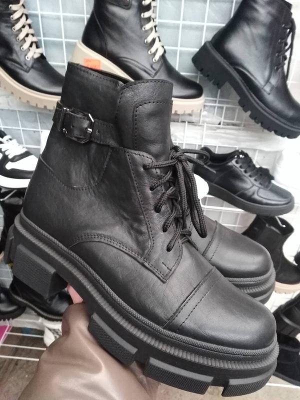 Черевички шкіряні весняні, білий колір, чорна підошва, в середині байка, 40р. Нові. (в наявності ще білий колір 38р ,39р).