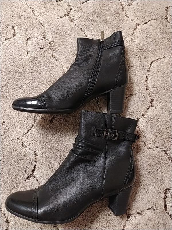 жіночі черевики із натуральної шкіри, носок і п'ятка лакова шкіра, стельки 25 см, на байці, м'якенькі і комфортні, каблук 5 см. Польща
