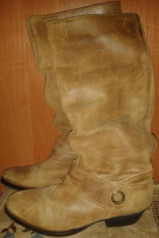 рижі чоботи шкіра р37 взувались не часто дуже мякі та зручні 36см висота обєм вгорі 39див устілка 24,5 см ширина каблук 9см 3см