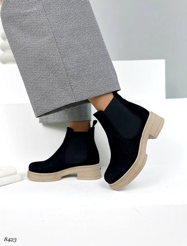 ❤️ Новинка в наявності Улюблені Челсі 😍 код 8423 демі код 8423-1 зима Черевики ЧЕЛСІ Натуральна замша ▫️демі підклад - байка ▫️зима - ( набивне хутро - 30 % овчини) ▫️колір - BLACK ▫️підошва спереду 2,5 см позаду 4,5 см ▫️висота від п'яти 12 см ▫️об'єм краю 26-28 см ▫️розміри 36-41 🔹виробництво Харків зима +100 грн 36 = 23,5см 37 = 24 см 38 = 24,5см 39 = 25-25,5 40 = 26 см 41 = 26,5см ✅ відшив - доступний