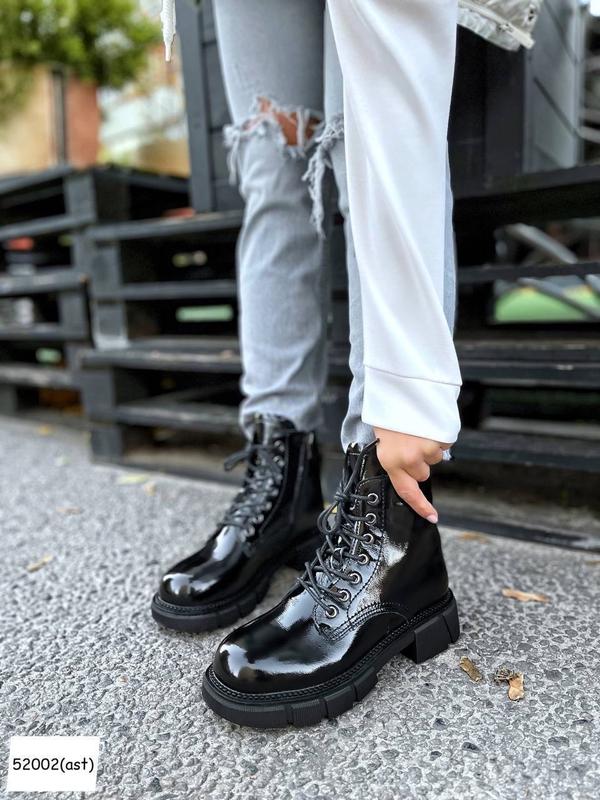 Розмір 40 ✔️ Код 52002 Черевики демі Aura лак. Йдуть розмір в розмір Матеріал: натуральна шкіра глянець, всередині ворсистий фліс Висота від п’ятки - 13см Підошва - 4см/2,5см На середню стопу Розмірна сітка: 40р-25,5 см
