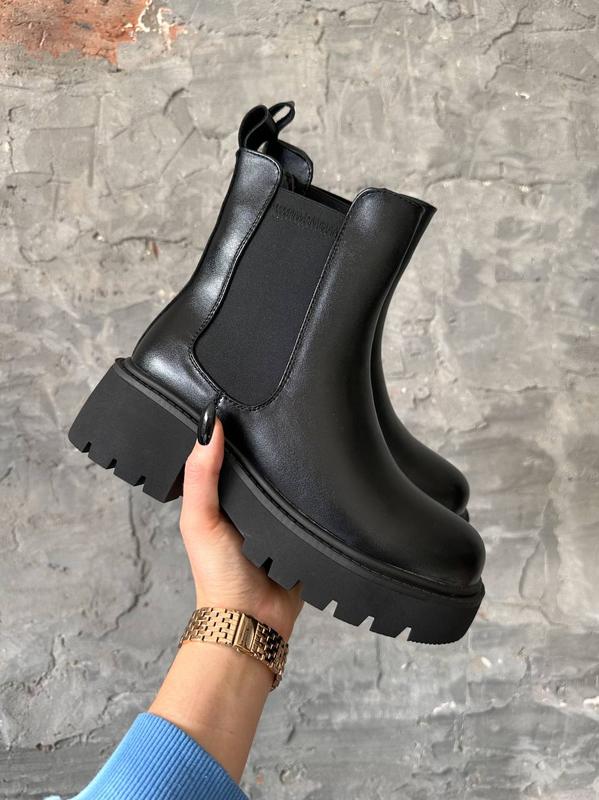 Завжди актуальні челсі Код 5243 Сезон: зима Колір: чорний Матеріал: еко шкіра Утеплювач: еко хутро Виробник: Китай Висота підошви: 6 см Висота виробу від п‘ятки: 15 см Розміри: 36-23.5 37-24 38-24.5 39-25 40-25.5