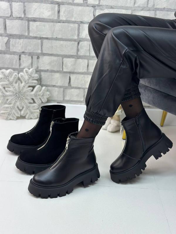 Зимові черевики на товстій підошві Матеріал: натуральна шкіра/замша Підкладка: набивна вовна Сезон: зима ❄️ Висота підошви: 5 см Висота чобота: 13 см Розміри: 36-41, розмір в розмір Відправка протягом 3-5 днів Доставка новою поштою по передоплаті 200 грн Укрпоштою тільки по повній передоплаті