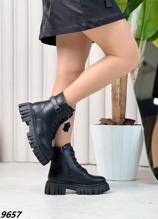 Код 9657 Матеріал натуральна шкіра. Сезон зима ❄️ Всередині еко хутро. Колір чорний 🖤 На шнурівці + блискавка ⚡ Висота взуття від п'яти 13 см Висота підошви 6 см Розмірна сітка: 36 - 23,5 см 37 - 24,0 см 38 - 24.5 см 39 - 25,0 см 40 - 25,5 см 41 - 26,0 см