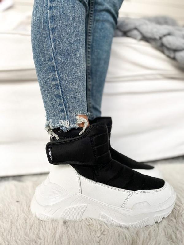 Виробник: Інший виробник Кілька примірників у наявності Білі сноутбутси Матеріал: віск. шкіра, вставки текстиль, підошва ПВХ Утеплювач: віск. хутро ⠀ Загальна висота: 19 см Платформа: 7 см Заміри вистьобів у см: 36-23.5 37-24 38-25 39-25.5 40-26 590 грн