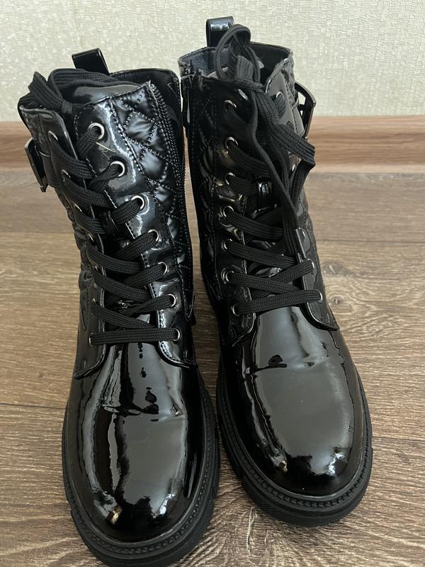Лаковые ботинки на шнуровке и молнии, стелька 23 см, внутри мягкие и не промокают, состояние новых, не подошел размер