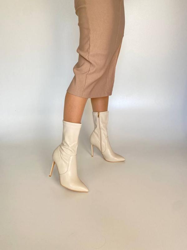 39-25,5 см 40-26 см Ботильони Код 680 Цвет: бежевый Материал: екокка кожа Каблук 10,5 см 36-41 Размер в размер