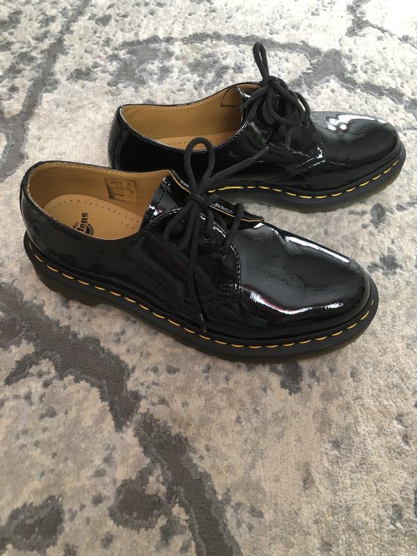 Зручні жіночі туфлі дербі класичного крою, на шнурівці, Dr. Martens із натуральної шикарної італійської шкіри чорного кольору, вона має незвичайну назву – матовий лак. Характерна для ТМ Dr. Martens яскрава нитка по канту тракторної підошви. Відмінно виглядають на нозі, модель не громіздка, але її не можна назвати витонченою. Класичний крій туфель дербі та оригінальна брутальна підошва з яскравим жовтим відстрочком по канту підошви. Попереду передбачено шнурівку. Завдяки ній Ви зможете ідеально зафіксувати взуття на нозі. Усі деталі цих туфель виконані з натуральної італійської шкіри – усередині та зовні . Стан відмінний, є незначні подряпини на носочках (видно лише зблизька) Устілка по факту 25,5см . Ці туфлі стануть родзинкою Вашого гардеробу.