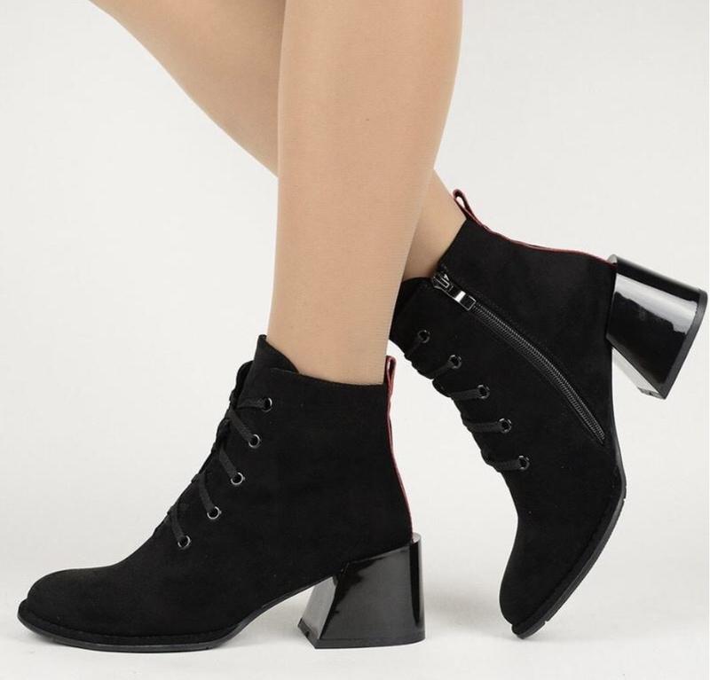 Осінні ботінки натуральна замш , утеплення байка , дуже зручний каблук не відчувається спереду атласна шнурівка яка допомагає регулювати об’єм ніжки збоку замочок стілька23, 5 см