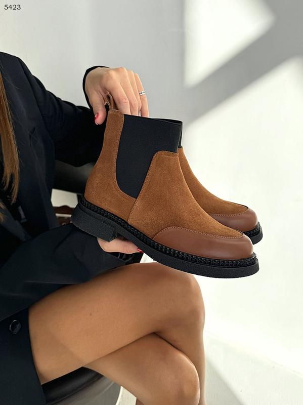 Ще одна новинка😍 Нереально круті! Нічого зайвого. Доступні до замовлення. Сезон можна обрати! Арт. 5423 демі Арт. 5423-1 зима Черевики -Натуральна замша/шкіра - Італія ▫️демі - усередині фліс ▫️зима - усередині набивне хутро - 30 % овчини колір - РУДИЙ підошва - спереду 2 см - позаду 3,5 см висота від п'яти 13 см -на середню стопу розміри 36-41 виробництво Україна зима +100 грн 36=23,5см 37=24 см 38=24,5 см 39=25,2 см 40=26 см 41=26,5 см ☑️ відшив - доступний